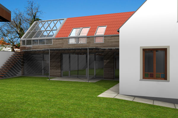 Přístavba garáže a zimní zahrady k rodinnému domu v Chrášťanech (2005)