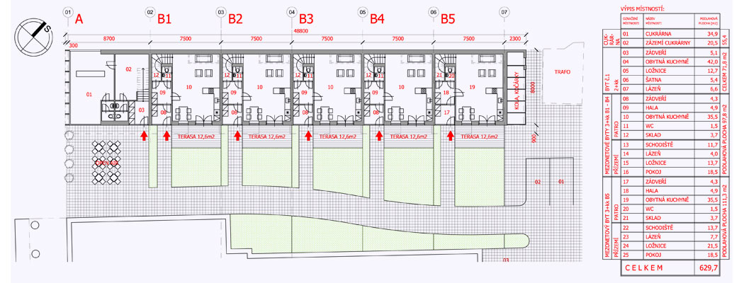 Vestavba bytu v patře víceúčelového objektu ve Vrchlabí (2005)