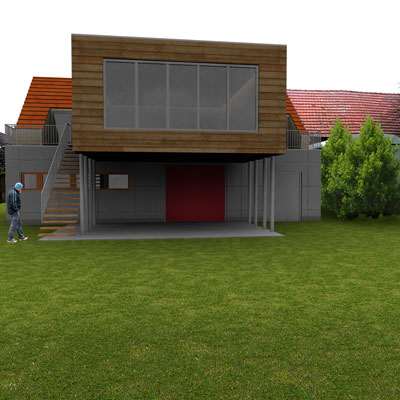 Nástavba pizzerie na obchodní dům z 80. let, Praha-Roztyly (2005) |