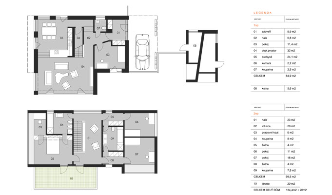 Přístavba garáže a zimní zahrady k rodinnému domu v Chrášťanech (2005)
